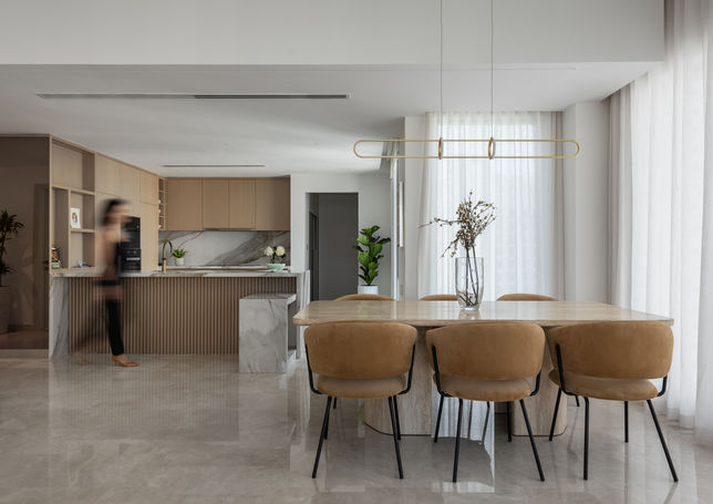 A complete renovation of a private Penthouse in Dubai Marina, offering sweeping 360-degree views of the city skyline and the Marina, which incorporates two guest bedrooms, a master suite, and a flexible lounge/study area, all of which complement the open luminous living space. Designed with a serene palette of colors, the apartment exudes as sense of calm and relaxation, enveloping each space in a soft, tranquil atmosphere. The sooting color scheme flows harmoniously troughout, creating a seamless, immersive experience that trasform the penthouse into a peaceful urban retreat amidst Dubai's vibrant cityscape.